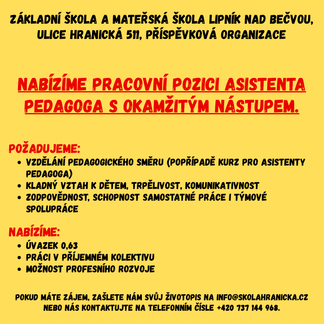 Hledáme asistenta pedagoga ZDE